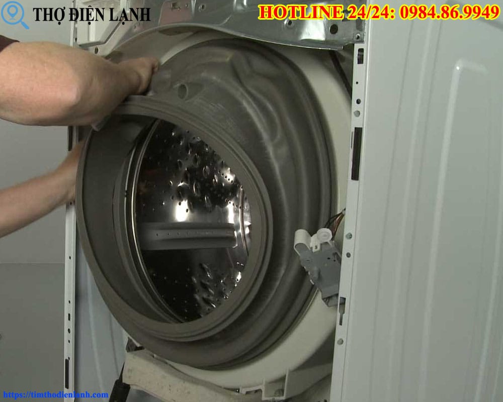 Đây là bước quan trọng và cũng là nguyên nhân phổ biến nhất khiến máy giặt rò nước. Khi bụi bẩn, cặn nước giặt bám lâu ngày sẽ làm gioăng không còn độ kín.